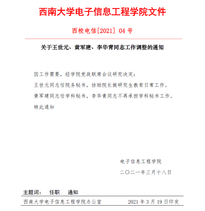 下一条:关于贺付亮、王世元同志职务任免的通知