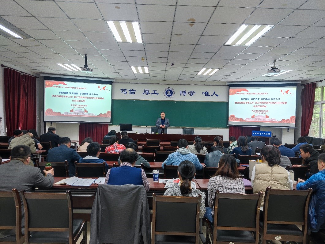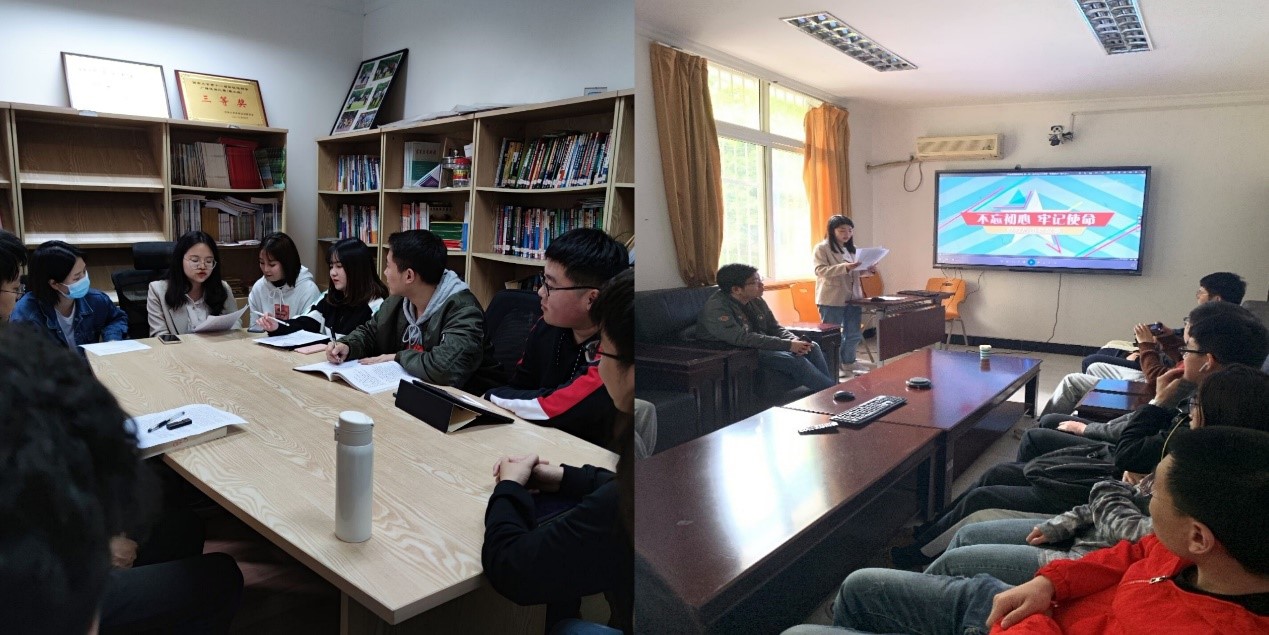各党支部迅速行动、积极落实,扎实推进党史学习教育走心走实走深。教工三支部以“继承革命精神 永葆奋斗初心”为主题开展党日活动,围绕传承榜样精神展开讨论。本科生2017级支部组织党员分享党史小故事,从百年党史中,汲取奋进力量。研究生2020级二支部书记联系实际,以“中国共产党扶贫史”为题讲授专题党课,引导党员习党史,学楷模,牢记时代使命。