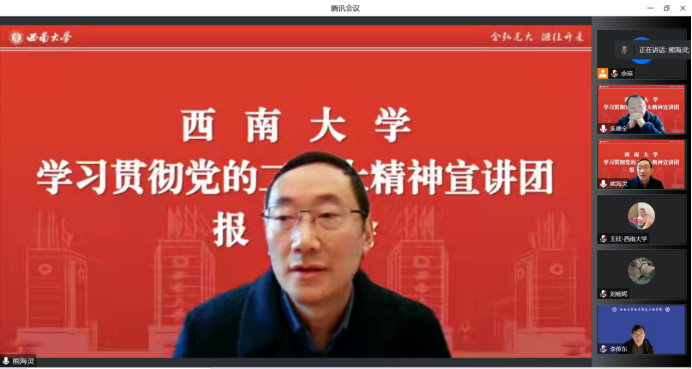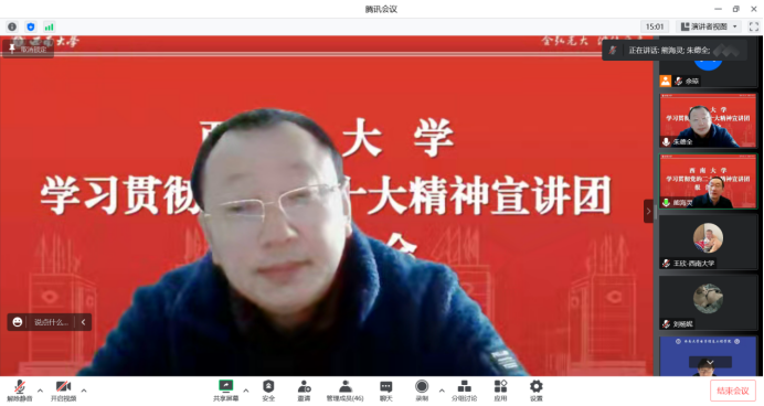 为深入学习宣传贯彻党的二十大精神,切实把广大干部师生的思想和行动统一到党的二十大精神上来,把智慧和力量凝聚到落实党的二十大确定的各项任务上来,根据集团统一安排,12月23日上午, bevitor伟德学习贯彻党的二十大精神宣讲报告会在线上进行。bevitor伟德党的二十大精神宣讲团成员、bevitor伟德党委委员、教育学部部长朱德全做主题宣讲。宣讲会由bevitor伟德党委书记熊海灵主持。