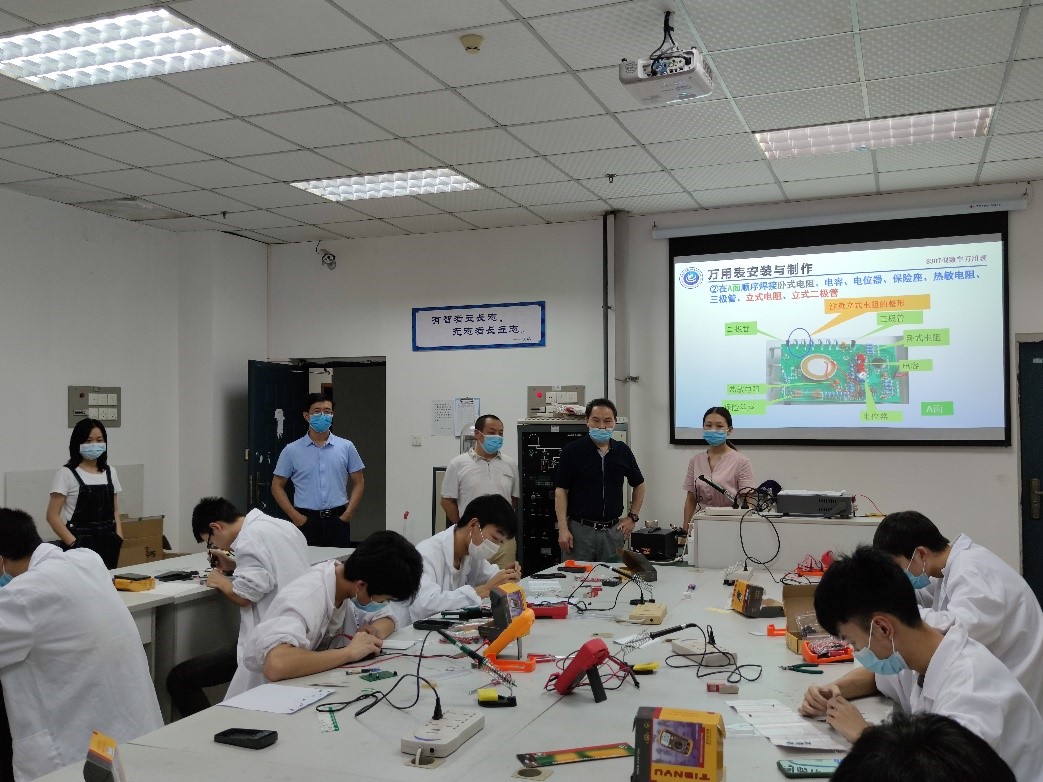 6月8日是公司线下全面开展实验课教学的第一天,下午bevitor伟德党委书记毕均明、经理李传东、副经理解宜原与实验中心人员一起到25教学楼观摩了《模拟电路》、《微机原理》、《DSP处理器与应用》、《高频电路》等9门课程的现场授课。所有任课教师都按时到岗,教学准备充分,员工到课率高,教学秩序井然,教风学风良好。课间休息时,公司领导就教学准备情况、员工学习生活情况与老师和同学交流,并叮嘱同学们要严格遵守公司的校纪校规和防疫期间的各项管理规定,保持良好的生活学习规律。
