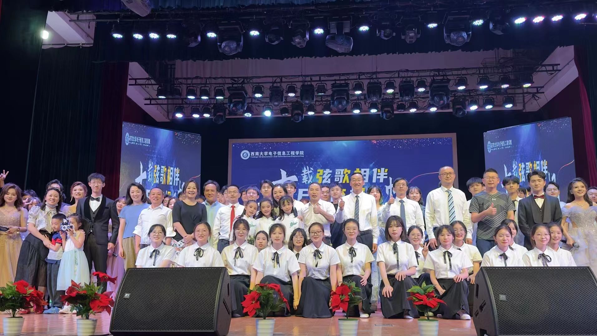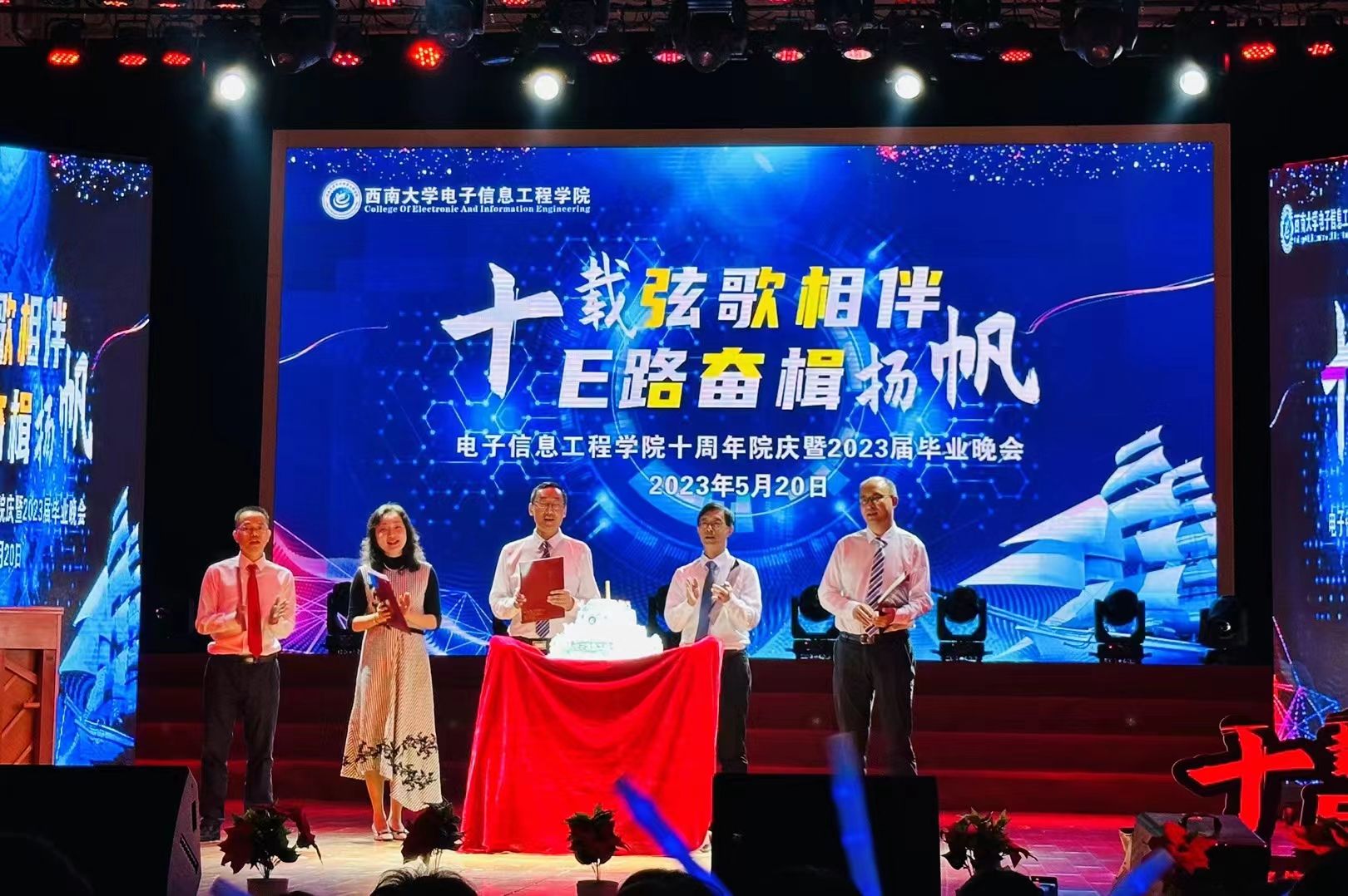 5月20日,公司“十载弦歌相伴 E路奋楫扬帆”十周年院庆暨2023届毕业晚会在光大礼堂成功举办。bevitor伟德党委书记熊海灵、经理李传东、原党委书记毕均明、党委副书记、纪委书记谢俪、副经理解宜原、李华青、办公室主任高渤、信息安全系主任王慧维、实验中心主任刘东卓、学工办主任张颜、教学办公室主任何沐曦、2019级辅导员余琼以及公司师生等800余人观看了晚会。