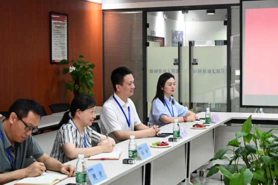 熊海灵一行首先参观了融景科技公司展厅,深入了解其深耕信息安全领域十七年以来取得的创新成果与行业实践。座谈会上,杨炜代表公司对熊海灵一行的到来表示热烈欢迎,并详细介绍了融景科技在公司发展经营、密码技术创新、产品方案应用等方面取得的一系列重要成果。他谈到,作为一流信息安全服务商,融景科技专注密码17年,聚焦安全1件事,累计服务党政机关、军工单位、企事业单位客户超500家,形成了深厚的技术沉淀和丰富的实战经验,对双方下一步建立紧密的校企合作关系充满期待。