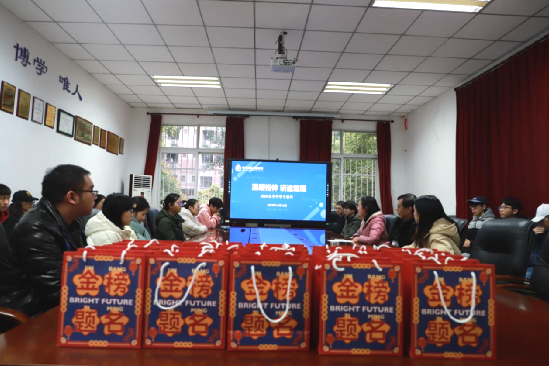 活动最后,公司领导为考研员工送上公司精心准备的考研“金榜题名”礼包。大礼包包含考研学子专属名字“一战成硕”可乐、“旺气冲天”牛奶糖、“薯”你最棒薯片、“巧”克难题士力架以及“锦鲤”签字笔,包含了公司对考研学子浓浓的关爱和殷切的期盼,希望考研学子一“研”为定、成功上岸!