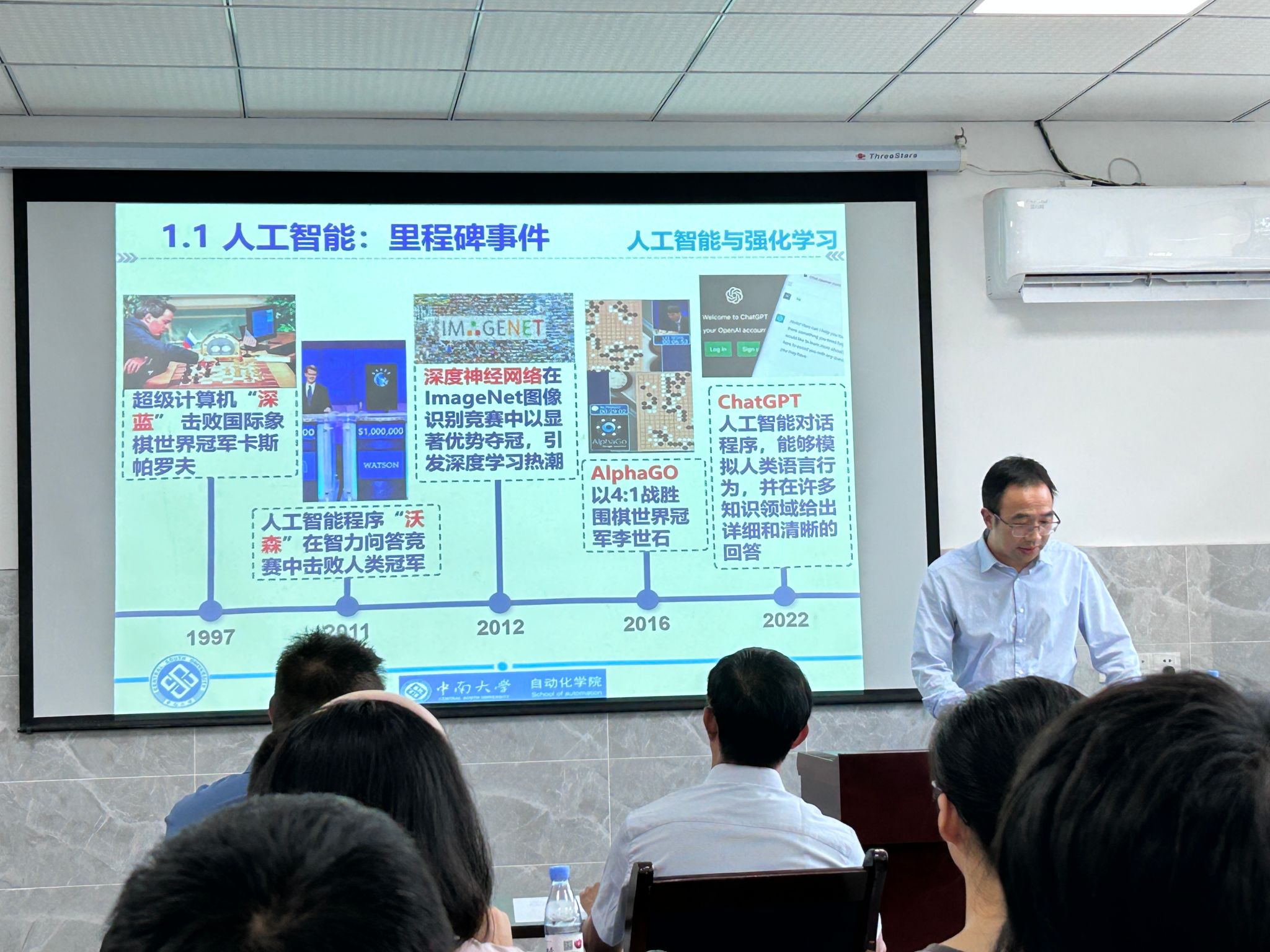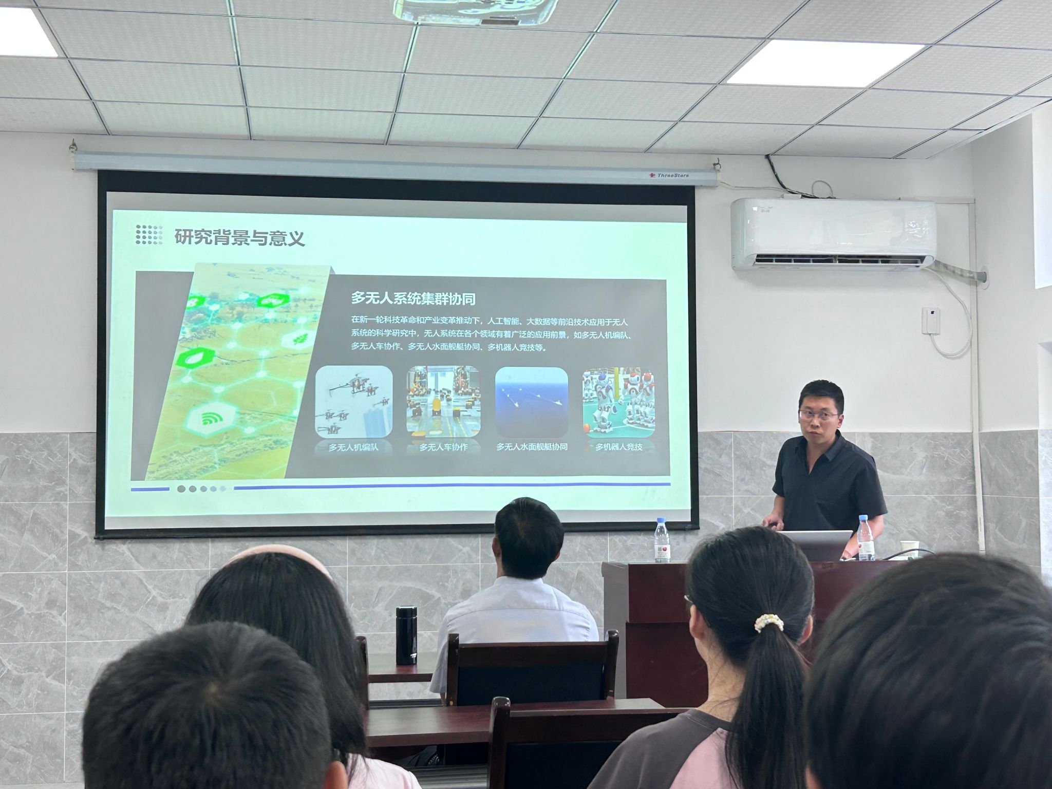 为延续公司长久以来的学术氛围,大力落实与各高校相关方向人才的交流,并在9月开学之际对硕士新生产生激励,公司于2024年9月7日特邀中南大学自动化公司罗彪教授和电子科技大学梁洪晶教授分别就“深度强化学习多目标决策”和“无人自主系统海空集群协同及隐私保护”做主题报告。公司经理李鸿一教授主持本次学术讲座并致辞,代表公司对与会嘉宾和师生表示热烈欢迎。