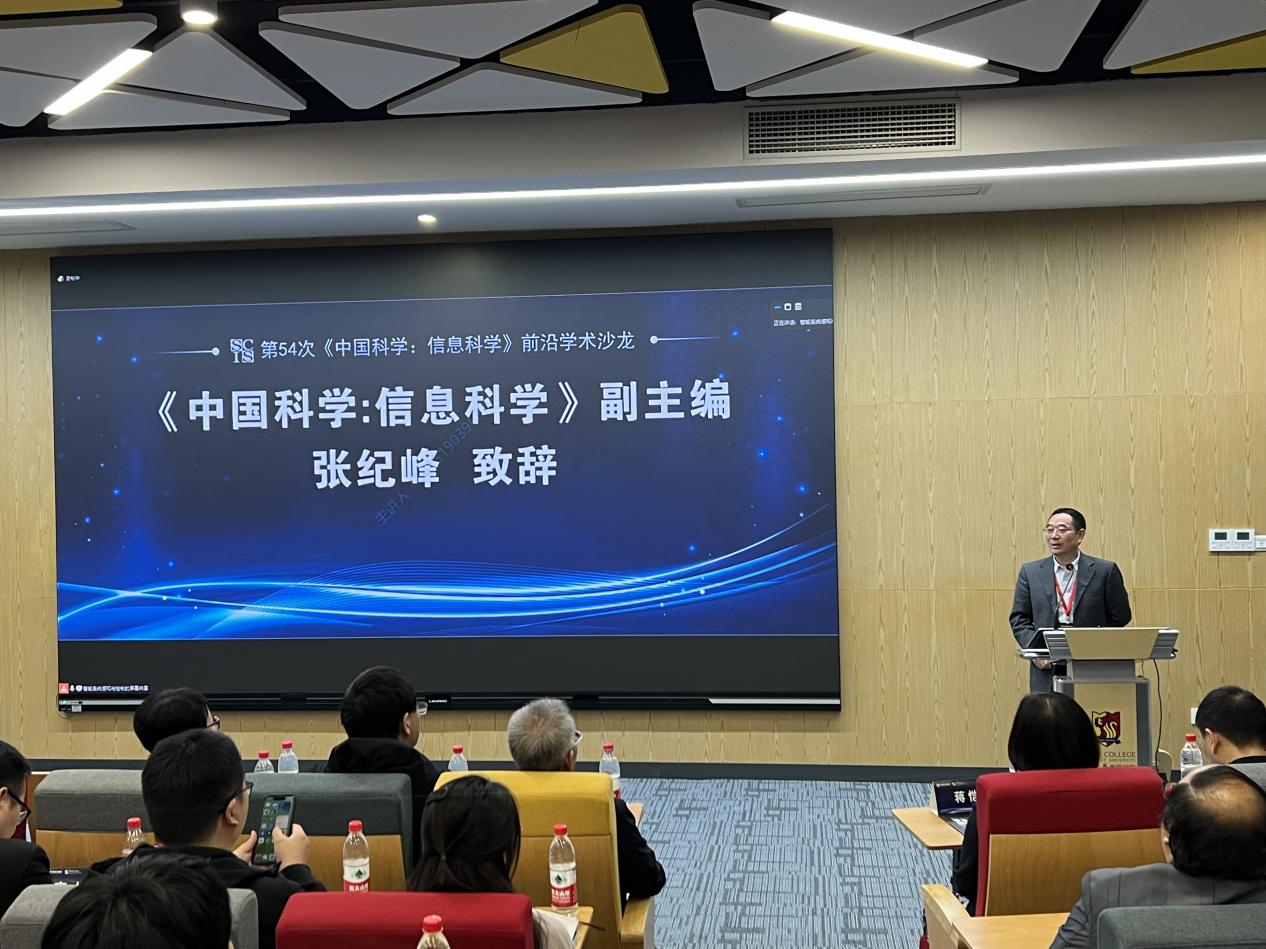 《中国科学:信息科学》副主编张纪峰研究员也进行了致辞,他介绍了《中国科学:信息科学》的总体发展与愿景,强调了国内期刊创办和发展的重要性,期望各位科研工作者与科研单位能共同将国内期刊推向世界、迈进国际一流。