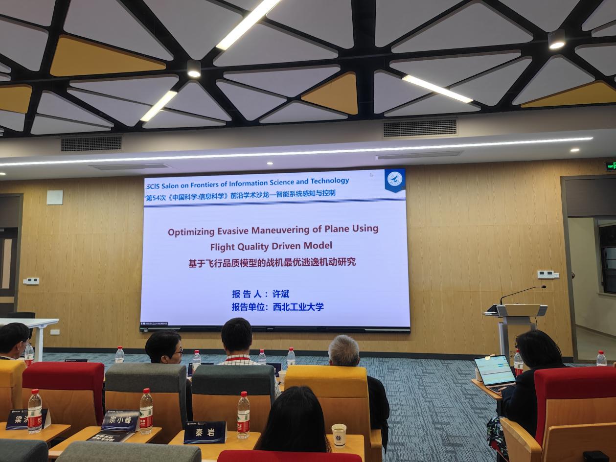 大会最后一场报告由重庆大学秦岩教授主持,西北工业大学许斌教授以《基于飞行品质模型的战机最优逃逸机动研究》为题,介绍了一种飞机在遭遇导弹攻击时基于飞行品质简化模型的多约束机弹对抗最优规避相关方法和研究成果。