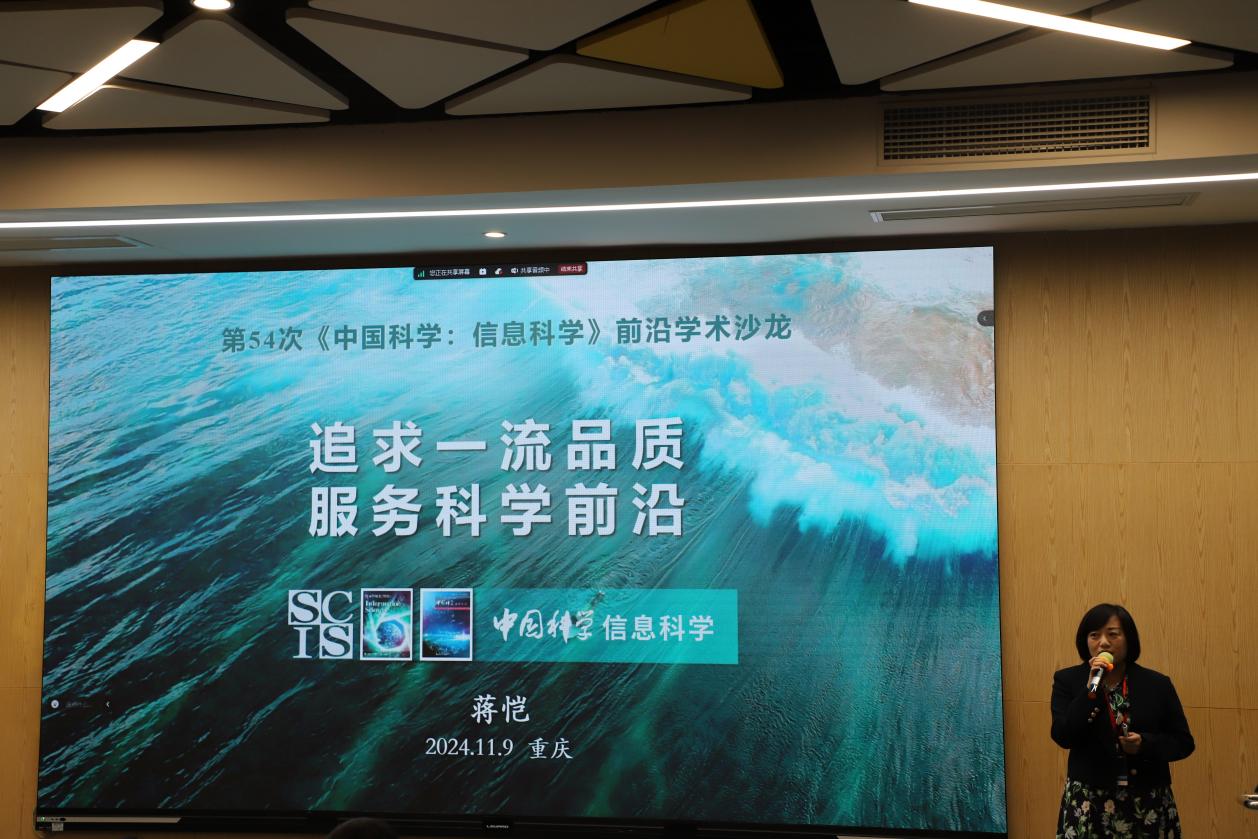 《中国科学:信息科学》编辑部副主任蒋恺从概况、发展、活动和展望等多个角度对该期刊进行了详细介绍,鼓励同行为期刊发展提供支持帮助,共同完成国内期刊高质量国际化发展的愿景,协力推动信息科学领域的发展。