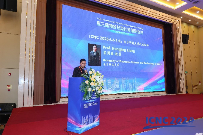 最后,电子科技大学梁洪晶教授上台宣讲致辞,作为下一届会议(ICNC 2025)承办单位的代表表达未来展望。