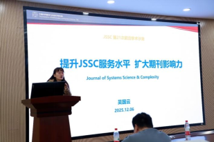 《系统科学与复杂性(英文)》编辑部主任吴国云主任以《提升JSSC服务水平,扩大期刊影响力》为题,介绍了JSSC期刊的基本情况、发展现状和发展目标,并基于期刊编辑实践,从重视论文学术质量、严格的同行评议制度、加强出版平台建设助力科学传播、建设期刊品牌等方面探索期刊在提升学术影响力方面的工作。该报告由上海电力大学王立成副教授主持。