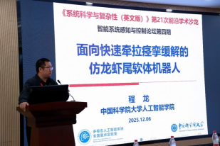 IEEE Fellow, 国家杰出青年科学基金获得者、中国科公司大学程龙教授进行了以《面向快速牵拉痉挛环节的仿龙虾尾软体机器人》为题的报告,介绍一种满足手部痉挛个性化需求的软体手部快速牵拉机器人,为痉挛的缓解提供一种新的技术手段。报告同时结合不同牵拉参数下感觉运动皮质活动变化,提出临床实验方案并评估牵拉方法的有效性。该报告由中国科公司自动化研究所王晨副研究员主持。