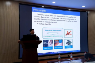 本次沙龙共有14位专家学者进行了学术报告。12月6日上午,首先由华南理工大学邓飞其教授进行题为《Stabilization of nonlinear systems by noise》的报告,介绍了如何基于新型随机系统稳定性定理及其推论,放宽传统条件假设,并通过噪声强度设计实现系统稳定化/去稳定化。该报告由重庆交通大学宋乾坤教授主持。